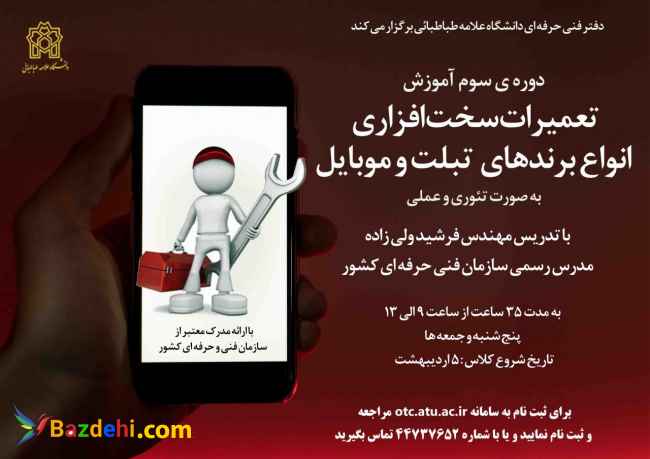 دوره ی تعمیرات موبایل با هزینه ی استثنایی فقط ۳۰۰ هزار تومان با ارائه ی مدرک رسمی از سازمان فنی و حرفه ای کشور بعد از اتمام دوره