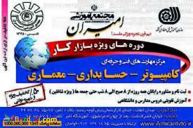 کاریابی آموزشگاه امیران شروع کلاس های حسابداری ویژه بازار کار در هر ماه دایر می باشد از ساعت 18:00 الی 20:00 دراین دوره شما با مفاهیم فن بیان حسابداری برای ورود به بازار کار آشنا می شوید: - 1حسابداری شرکت های خدماتی 2- حسابداری شرکت های تولیدی و صنعتی 3- حسابداری شرکت های بازرگانی 4- حقوق و دستمزد -5آموزش نرم افزار حسابداری هلو 6- تهیه اظهارنامه مالیاتی 7- تهیه و تنظیم اظهارنامه ارزش افزوده قابل ذکر است کلیه کلاس ها زیر نظر سازمان آموزش فنی و حرفه ای کشور و اساتید مجرب برگزار خواهد شد.) و در پایان دوره معرفی به کار زیر نظر مرکز مشاوره شغلی و کاریابی امیران میشود شماره تماس :66484875 02166484876 02166418847 09121371865:قوامیان شماره تماس : 09381010535