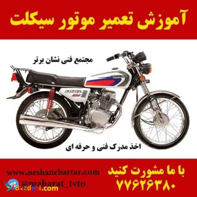 مدت زمان دوره ۲ ماه کلاس به صورت حضوری (۲روز در هفته شنبه و دوشنبه ها) ۲ ساعت آموزش تعمیرات و عیب یابی از ۰ تا ۱۰۰ مقدماتی و پیشرفته اساتید مجرب سازمان فنی و حرفه ای پرداخت شهریه به صورت نقد و اقساط آموزش تخصصی موتور های : ویو،پولسار،آپاچی،موتور های کراس انژکتور مزایای گذراندن دوره های فنی و حرفه ای: اخذ مدرک فنی و حرفه ای قابل ترجمه (بین المللی) دریافت وام خوداشتغالی امکان اخذ جواز کسب مشاوره و ثبت نام: ۷۷۶۲۶۳۸۰-77626381 مجتمع فنی نشان برتر