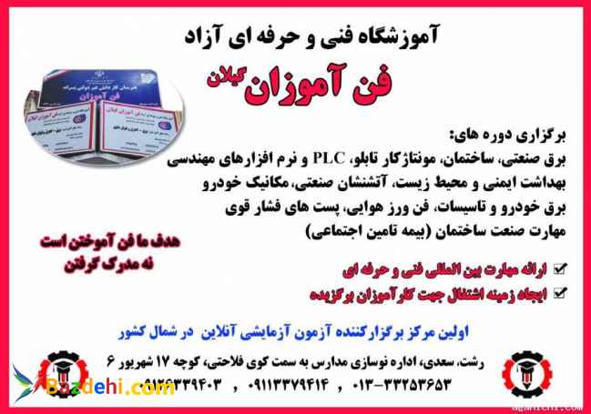 برگزاری کلیه دوره های برق و خودرو دارای مجوز از سازمان فنی حرفه ای رشت