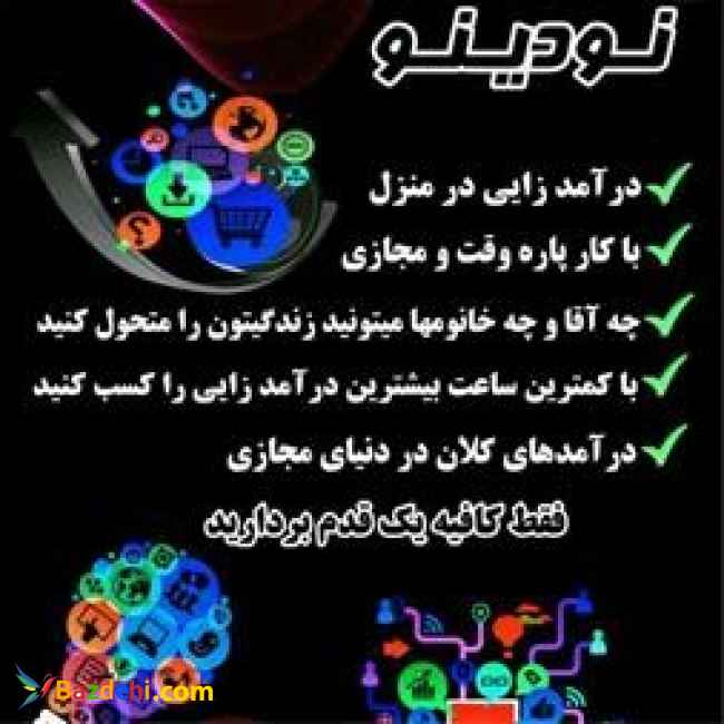 کار ما در نودینو معرفی این اپلیکیشن به عموم افراد خواهد بود.به همین سادگی ! نودینو به ازای هربار معرفی شدن توسط ما 20هزار تومان به حسابمون واریز میکنه ! به همین سادگی ! این تنها برای اپلیکین نودینو هست ! چون درون اپلیکیشن نودینو اپلیکیشن های دیگری هم وجود دارن و به سبب معرفی و نصب نودینو اون ها هم معرفی و نصب میشن ، به ازای هرنصب 700تومان به ما تعلق میگیره . با یه حساب سرانگشتی میشه فهمید که اگر نودینو رو تنها به 10نفر معرفی کنیم 200 هزار تومان سهم ما تنها از نصب نودینو خواهد بود...! شما برای این کار نه به سرمایه اولیه ، نه به مدرک تحصیلی خاص و نه به بیرون رفتن از خونه احتیاج دارید ! تنها 2ساعت وقت در روز و انگیزه برای تغییر درآمد لازمه . این فرصت مناسب برای تمام اشخاصی هست که به دنبال کار دوم ، پاره وقت ، دورکاری و کار در خانه هستن ، چه خانم ها و چه آقایون. بیاید حضورمون در اینترنت به صرفه و مفید باشه ، امروزه دیگه اینترنت شبکه وسیع و جهانی درآمد زایی هست.عقب نمونیم...