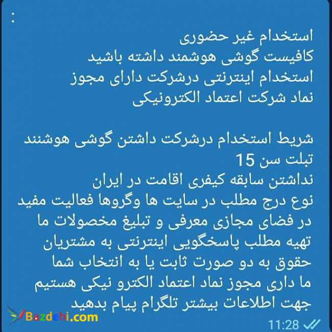 ??? توجه ، توجه ??? ?کسب درآمد خیلی ساده، رایگان و واقعی فقط با گوشی ?درآمد میلیونی با 5 ساعت در روز در کنار کارهای روزانه در هر کجا از طریق تلگرام فقط با یک گوشی، بصورت پاره وقت در زمان و مکان دلخواهتان? ?مخصوص تمامی اقشار جامعه، (خانم ها و آقایان، دانشجویان، نوجوانان و... ) ??? ?شرایط کار: ✅بدون نیاز به تخصص ✅بدون نیاز به تحصیلات بالا ✅بدون محدودیت سنی ✅درآمد راحت و آسان در منزل ✅نه نیاز به ریالی سرمایه جهت کسب اطلاعات بیشتر تلگرام پیام بدید!