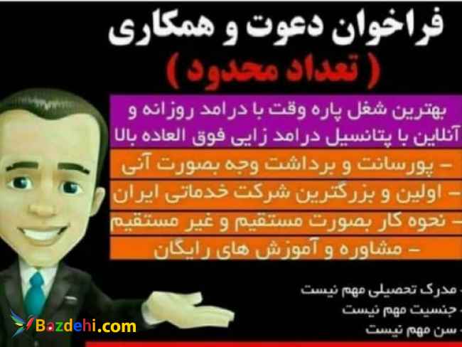 قابل توجه تمام کسانی که در این اوضاع به دنبال کاری با درآمد خوب میگردند که نه تحت تأثیر کرونا باشه و نه تحریم **فرصتی بی نظیر و استثنایی** یکی از بهترین شرکت های دانش بنیان ایرانی با بیش از 9 سال سابقه فعالیت که دفتر مرکزی آن در تهران میباشد و دارای چندین مجوز رسمی دولتی میباشد و در زمینه توسعه طرح های نوین مخابراتی و خدماتی فعالیت میکند و اخیرا از دست معاون رئیس جمهور لوح تقدیر در زمینه اشتغالزایی دریافت کرده، جهت طرحهای مشارکت مردمی به تعداد محدودی نیروی فعال و اکتیو جهت دریافت و واگذاری نمایندگی مستقل نیاز دارد. مزایای طرح ها: ۱-بدون محدودیت مکانی(امکان فعالیت در تمام شهرها) ۲-عدم نیاز به مراجعه حضوری جهت فعالیت(مجازی) ۳-آموزش و پشتیبانی کاملا رایگان از طرف شرکت ۴-مناسب جهت شغل اول یا پاره وقت ۵-امکان واگذاری نمایندگی بعداز ثبت نام در طرح،به دوستان،آشنایان یا به تمام افراد واجد شرایط جهت افزایش درآمد ۶-داشتن آشنایی در زمینه اینترنت و برنامه های ارتباط مجازی ۷-بدون نیاز به مدرک تحصیلی یا رشته خاص ۸-دارای طرحهای متنوع از لحاظ امکانات و قیمت جهت شروع فعالیت و تهیه ابزار کار مورد نیاز ۹-کمترین میزان هزینه جهت تهیه ابزار کار نسبت به استارت آپ ها و کارهای دیگر ۱۰-جنسیت و سن مهم نیست. لطفا جهت کسب اطلاعات یا آگاهی بیشتر و دریافت وقت مشاوره مجازی و رایگان به این شماره از طریق واتساپ پیام دهید.۰۹۱۶۶۱۲۹۴۰۸