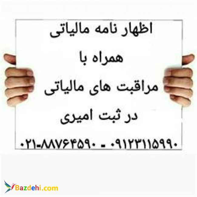 ثبت امیری تنظیم اظهارنامه مالیاتی همراه با مراقبت های مالیاتی توسط کارشناسان مجرب ? ?خدمات ارائه شده در ثبت امیری?: ◀️اخذ و ارتقا رتبه پیمانکاران و مشاوران ◀️ ثبت انواع شرکت تجاری و موسسات غیر تجاری ◀️ ثبت انواع تغییرات شرکت ها ،ثبت انحلال شرکت ◀️ تشکیل پرونده مالیاتی و اخذ کد اقتصادی ◀️ تشکیل پرونده و اخذ گواهینامه ارزش افزوده ◀️ اخذ پلمپ دفاتر تجاری ◀️ثبت ، تمدید علامت تجاری ( برند) ◀️ثبت,تمدید طرح صنعتی ◀️اخذ ،تمدیدکارت بازرگانی ◀️تهیه انواع طرح توجیهی و اخذ جواز تاسیس ♦️ثبت امیری با 20سال سابقه در خدمت شما ⭕️ ارتباط با ما ?: ?021-88764590-021-88735298 ?09123115990 ?کانال ما :https://t.me/sabtsherkatvabrandamiri ?وبسایت: http://www.amirisabt.com/ ?تلگرام ما :https://t.me/sabtsherkatamiri ?اینستاگرام:www.instagram.com/sabtsherkatamiri/ ثبت امیری ثبت شرکتداخلی خارجی،ثبت برند،رتبه بندی،حسابداری، جوازتاسیس، آدرس: تهران-خ مطهری - خ میرعماد - کوچه یکم - پلاک 6 - طبقه سوم - واحد 14