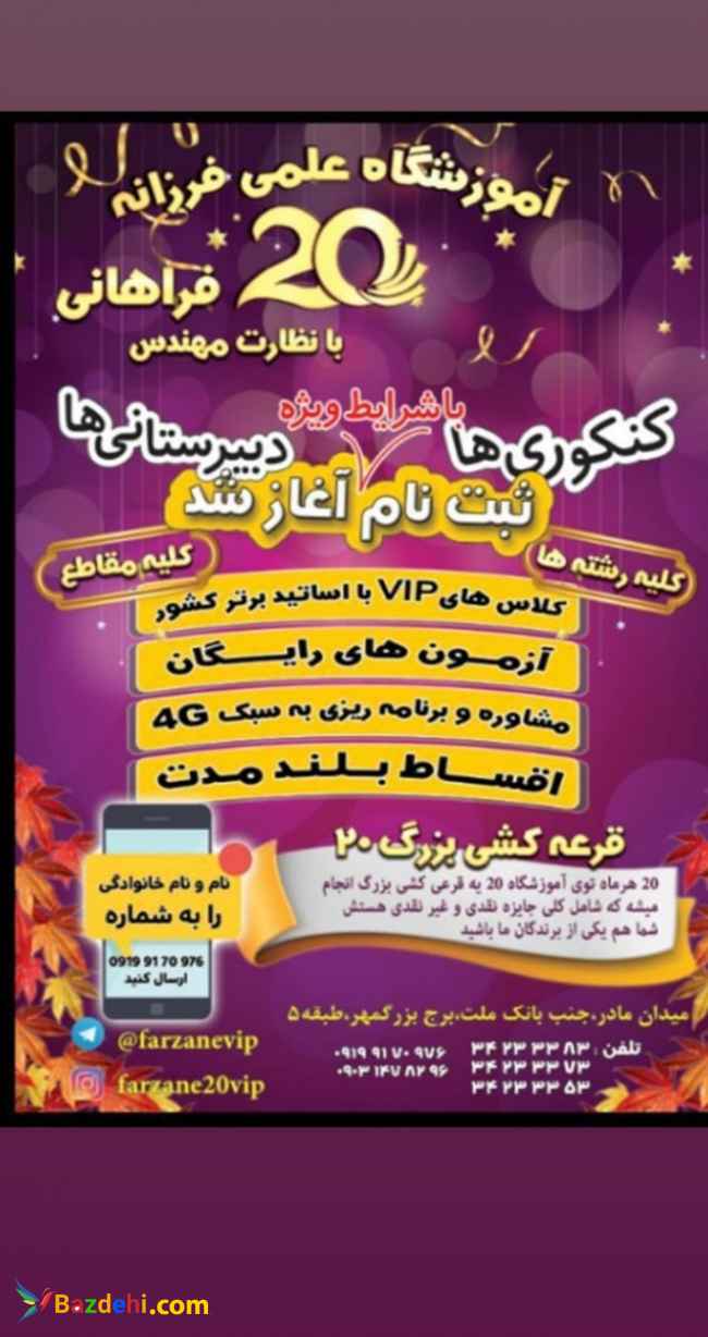 آموزشگاه کنکوری علمی فرزانه ۲۰ کرج
