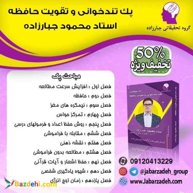 این بسته آموزشی شامل جدیدترین دستاوردهای مبحث تند خوانی و تقویت حافظه است که با آموزش صریح ، شیوا و بسیار آسان به زبان خیلی ساده قابل استفاده برای همه افراد جامعه می باشند. در این بسته آموزشی سعی کردیم همه موانع و مشکلات موجود در مطالعه اعم از خواب آلودگی هنگام مطالعه، عدم تمرکز حواس ،عدم به یادسپاری مطالب ، وعدم به یاد آوری مطالب یادگرفته شده وغیره را یافته و راه حل های مناسب را برای هر کدام از آنها مطرح کنیم .