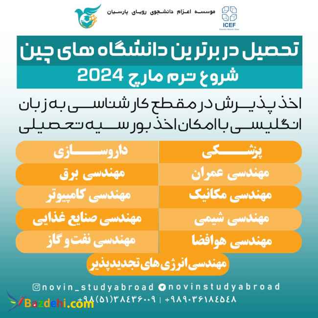 موسسه اعزام دانشجوی رویای پارسیان، عضو جامعه مشاوران رسمی ICEF فرصت ویژه برای تحصیل با کمترین هزینه در بهترین رشته ها پزشکی داروسازی مهندسی شیمی مهندسی هوافضا مهندسی مکانیک مهندسی عمران در دانشگاههای معتبر چین