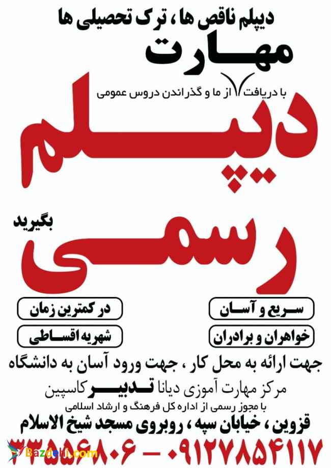 دیپلم قانونی و قابل استعلام از آموزش و پرورش در کمترین زمان شهریه اقساطی خواهران و برادران جهت ارائه به محل کار ورود آسان به دانشگاه کارت هوشمند رانندگان گزینش نیروی انتظامی