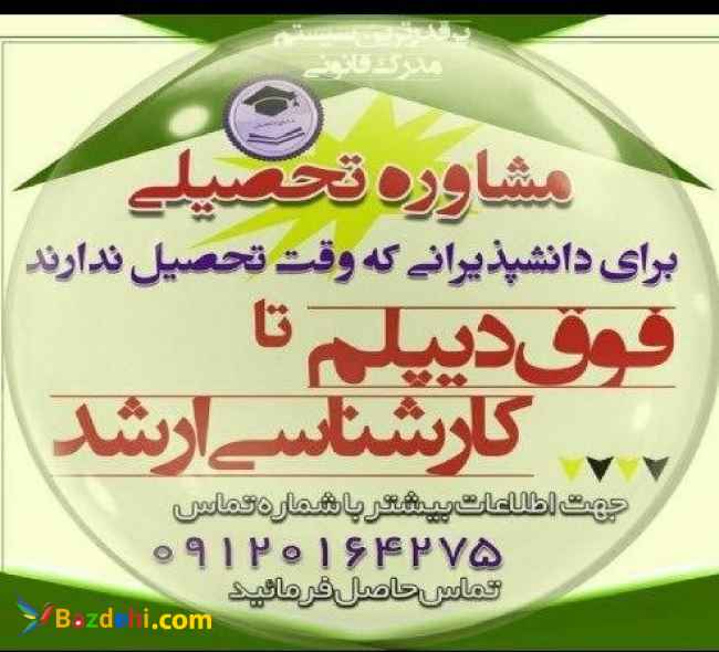 صدور مدارک دانشگاهی اخذ مدارک دانشگاهی معتبر در رشته غیر پزشکی مشاوره تحصیلی مشاوره تضمینی قبولی در امتحانات مشاوران مدارک تحصیلی تجربه 14 ساله مجموعه ما در امر اعزام دانشجو به کشورهای مختلف از جمله کانادا و آمریکا با تاییدیه سازمان WES جهت مهاجرت ما را بر آن داشته تا با بهره گیری از این تجربیات، با بهترین کیفیت و خدمات در خدمت هموطنان عزیزمان باشیم. اگر چه در این مدت مؤسسات مجاز و غیرمجاز در کشور نیز فعالیت مشابه داشته اند ولی آنچه مهم است رضایتمندی از کیفیت کار ماست که باعث شده از سرتاسر ایران متقاضیان جدیدی با ما در ارتباط باشند و بخاطر عملکرد خوبی که در رابطه با دوستان و بستگانشان داشته ایم، درخواست مشاوره، اخذ پذیرش و درخواست خدمات پشتیبانی در کشور مربوطه را از ما داشته باشند. خدمات ما : اخذ مدارک تحصیلی معتبر اخذ دیپلم تا دکترا از دانشگاههای داخل و خارج از کشور ، ارائه بورس تحصیلی آماده از 20 تا 100% تکمیل پرونده های مهاجرتی ادامه تحصیل بدون مدرک ثبت نام در دانشگاههای معتبر خارجی بدون نیاز به مدرک قبلی ، 100% تضمینی ارائه گواهینامه ها و مجوزهای معتبر گروه ما تمامی کارهای اداری و پرونده های شما رو در ادارات انجام خواهد داد و شما اصلا نیاز به کاری ندارید که انجام دهید زیرا صفر تا 100 کار را ما انجام خواهیم داد راه های ارتباطی: تلفن: 09120164275 09012739671 تلگرام : https://t.me/moshaver_ac واتساپ : http://wa.me/+989120164275