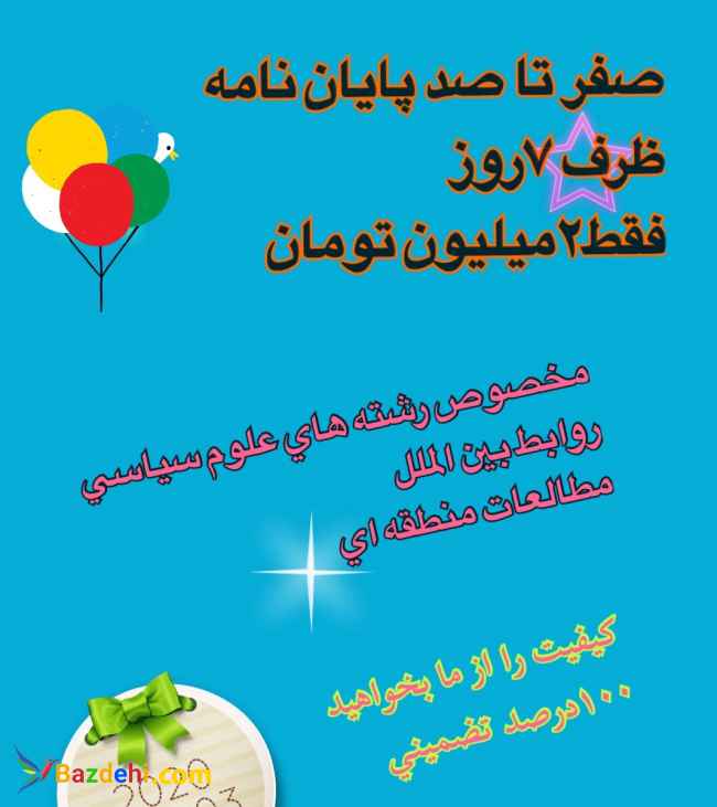 ✅انجام پايان نامه هاي رشته هاي علوم سياسي و روابط بين الملل ✅فقط در هفت روز ✅فقط با دو ميليون تومان ?با بالاترين كيفيت