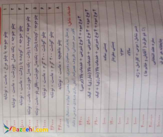 تمامی غذاهای فوق باماست و نوشابه میباشد