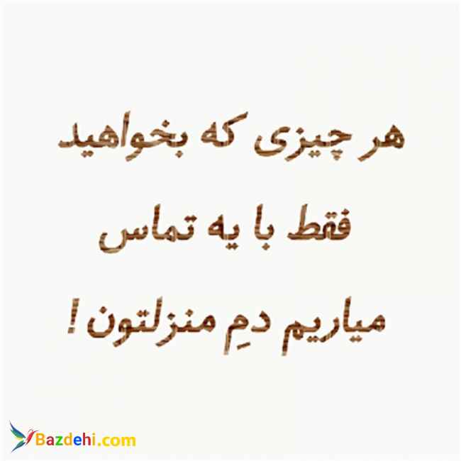 با عرض سلام خدمتِ همشهریانِ خوب و عزیزم... شما فقط و فقط با یه تماس هر چی که بخوایید (از شیرِ مرغ تا جونِ آدمیزاد) براتون با پیکِ رایگان میاریم... خوراکی... میوه.. لوازمِ تحریر.. دارو... لباس... لوازم بهداشتی و آرایشی و غیره...و هر چیزی که شما بخواهید... در کمترین زمانِ ممکن میاریم دربِ منزلِ شما عزیزان... و مبلغ رو در محل به پیکِ ما پرداخت میکنید...