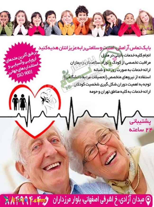 موسسه پرستار سلام ارائه خدمات پرستاری در منزل موسسه پرستار سلام (۰۲۱88499404) به شماره ثبت ۵۲۶۵۹۶ پس از اخذ کلیه مجوزها آماده ارائه خدمات : 1- پرستاری، مراقبت و نگهداری از سالمند در منزل 2- پرستاری، مراقبت و نگهداری از کودک و نوزاد در منزل 3- پرستاری، مراقبت و نگهداری از بیمار در منزل 4- همراه بیمار در منزل و بیمارستان 5- نظافت منزل و محل کار / امور منزل و آشپزی 6- تزریقات و پانسمان در منزل 7- انواع ماساژ در منزل 8- اعزام کارشناس زخم بستر 9 -بیمه عمر و تامین آتیه برای پرستارها و خود شما {{{ بالاترین میزان رضایت مردمی در استان تهران }}} ✅ چندین شعبه سراسر استان تهران ✅ انجام تمامی امور مراقبت و نگهداری از سالمند کودک در منزل و بیمارستان ✅ روزانه - شبانه روزی ✅ نیمه وقت - تمام وقت ✅ تمامی نیروها تضمینی و دارای ضمانت های لازم نزد شرکت می باشند ✅ همراهی موسسه تا پایان قرارداد ✅ تنها مرکز دارنده استاندارد ملی ✅ سالها تجربه و نشان اعتماد مردمی