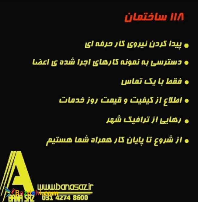 www.banasaz.ir سایت بناساز محل ارائه کالا و مشاغل ساختمان -پیدا کردن کالای مورد نظر -فقط با یک تماس -اطلاع از جنس،رنگ و قیمت روز کالای انتخابی -دسترسی به لیست فروشندگان و ارتباط با آنها -رهایی از ترافیک شهر -از انتخاب تا خرید همراه شما هستیم -پیدا کردن نیروی کار حرفه ای -دسترسی به نمونه کارهای اجرا شده ی اعضا -فقط با یک تماس -اطلاع از کیفیت و قیمت روز خدمات -رهایی از ترافیک -از شروع تا پایان کار همراه شما هستیم