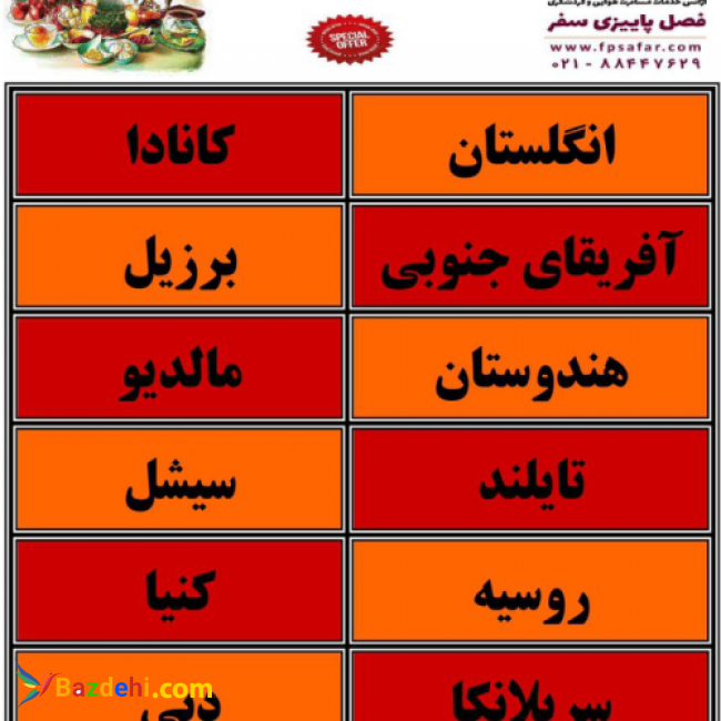 اژانس هواپیمایی فصل پاییزی سفر تورهای مسافرتی،گردشگری ،تفریحی ،خارجی و داخلی قیمت مناسب با پشتیانی ۲۴ساعته در طول سفر و خدمات تورارائه می شود تلفن همراه :09905287375 تلفن ثابت : 02188447629 آدرس سایت: https://www.fpsafar.com/ اینستاگرام https://instagram.com/faslepaeizi?utm_medium=copy_link ایمیل این آدرس ایمیل توسط spambots حفاظت می شود. برای دیدن شما نیاز به جاوا اسکریپت دارید نام و نام خانوادگی مهدی کلاته سیفری نام واحد تجاری فصل پاییزی سفر استان تهران امکانات مشاوره رایگان, فروش اینترنتی آدرس تهران :مطهری،ترکمنستان،پلاک چهل دو،طبقه چهارم واحد10