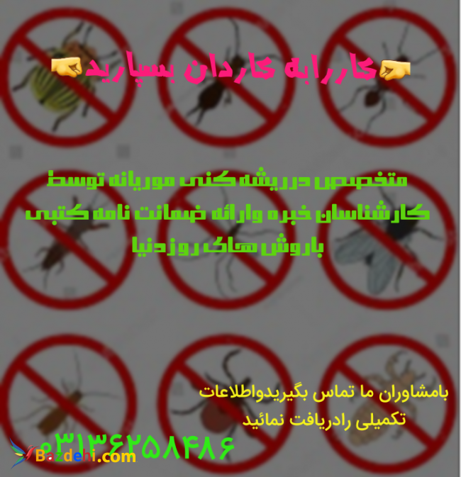مجری تخصی نابودی حشرات ازجمله:موریانه..سوسک..ساس..و...باارائه ضمانت نامه کتبی