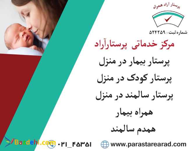 مرکز خدماتی شبانه روزی "پرستار آراد" به صورت 24 ساعته با مشاوره رایگان آماده پاسخگویی و ارائه خدمات پرستاری در منزل می باشد. خدماتی که توسط این مرکز ارائه می شوند به شرح زیر می باشد: 1-ویزیت پزشک در منزل 2-خدمات مراقبتی و پرستاری کودک و سالمند در منزل 3-خدمات مراقبتی و پرستاری بیمار در منزل 4-خدمات همراه بیمار در بیمارستان با ما در ارتباط باشد: 02145351 سعادت آباد ، ضلع جنوب غربی تقاطع سرو و پاکنژاد ، پلاک 62 ، طبقه 4 واحد 10