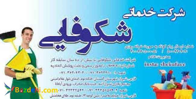 شرکت خدماتی پرستاری شکوفایی ارایه دهنده ی خدماتی نظیر: پرستاری از کودک,سالمند,بیمار,امورمنزل وتنظیفات,نظافت راه پله ها,شرکتها و...با بیش از یک دهه سابقه کار و دارای کادری مجرب دارای دوشعبه در شیراز: شعبه1:شیراز_شهرک گلستان_جنب بانک سپه_ورودی آپادانا تلفن تماس:07136222100_07136204302_09170227071_09300027071 شعبه2:شیراز,ملاصدرا,نبش کوچه4,مجتمع پزشکی ملاصدرا,طبقه چهارم تلفن تماس:07136472790_07136472795