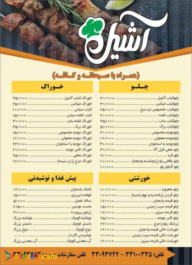 کافه رستوران آشیل با قبول سفارشات مجالس و مراسمات
