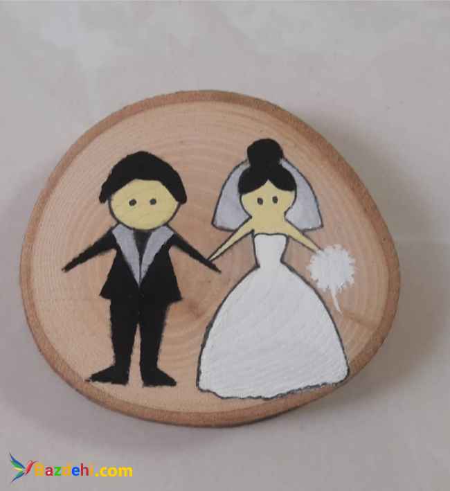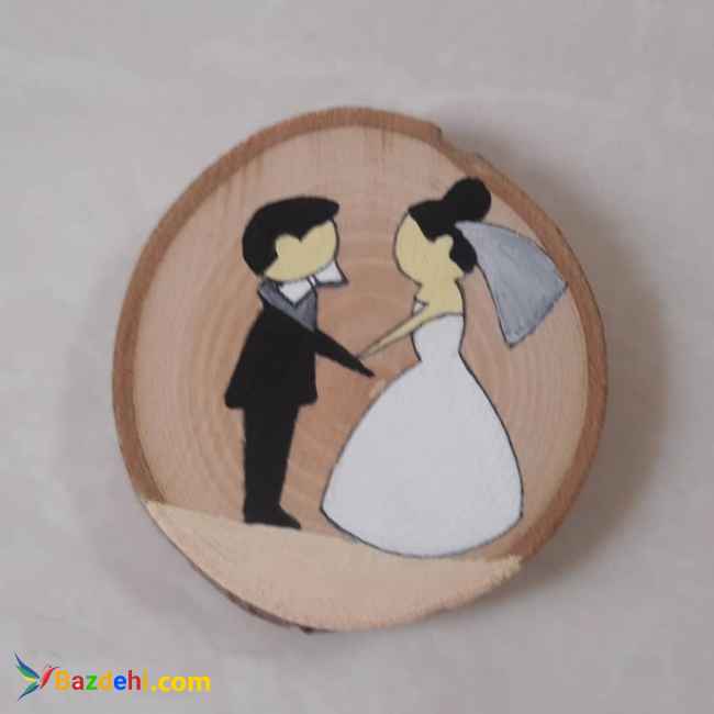 گیفت های چوبی عقد و عروسی و نامزدی دارای نقاشی با دست سایز گیفت ۷-۸ سانت حد اقل سفارش ۱۰ عدد هزینه ارسال بر عهده خریدار است
