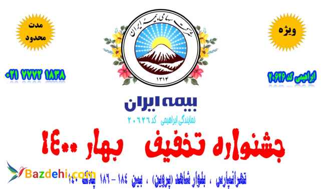 بیمه ایران تهرانپارس | شرق کد 20626 تلفن: 02177721838 وب سایت: https://eBimeiran.ir ارسال پیام در تلگرام: https://t.me/e_bimeiran ایمیل: این آدرس ایمیل توسط spambots حفاظت می شود. برای دیدن شما نیاز به جاوا اسکریپت دارید آدرس: تهران ، تهرانپارس ، بلوار شاهد ، بین خیابان 184 و 186 پلاک 140 آدرس در گوگل مپ: https://goo.gl/maps/rGEPBhfUGnTdRmuV7 صدور انواع بیمه نامه به صورت حضوری و غیرحضوری