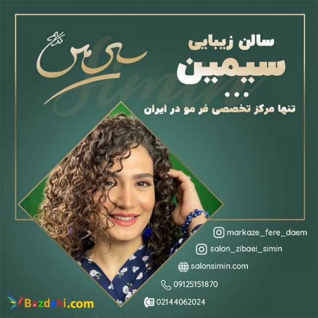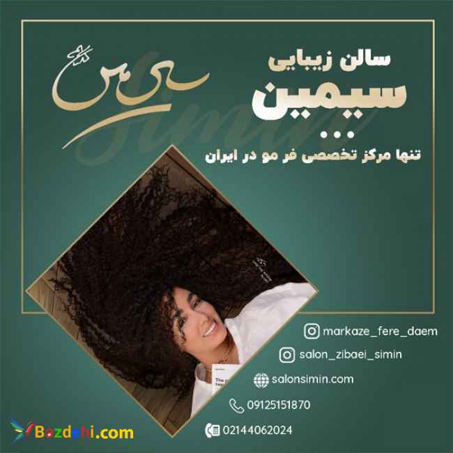 تهران،فلکه دوم صادقیه، بلوار فردوس شرق، بین گلستان و سلیمی جهرمی، روبروی فرهنگسرای فردوس، پلاک ۱۹۱، طبقه سوم، سالن زیبایی سیمین