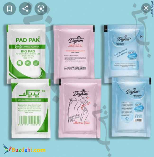 پد الکلی با برند پد پاک یکبار مصرف ، دستمال الکلی و مرطوب با امکان چاپ برند ،انواع لاک پاک