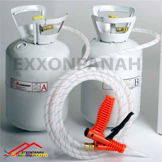 هر جفت کپسول اسپری فوم پلی یورتان که حاوی دو کپسول 8 کیلوگرمی به همراه 6 متر شلنگ ، گان (Gun) مخصوص اسپری و 12 عدد نازل قابل تعویض می باشد که در پک مخصوصی به همراه کپسول ها ارائه می گردد.