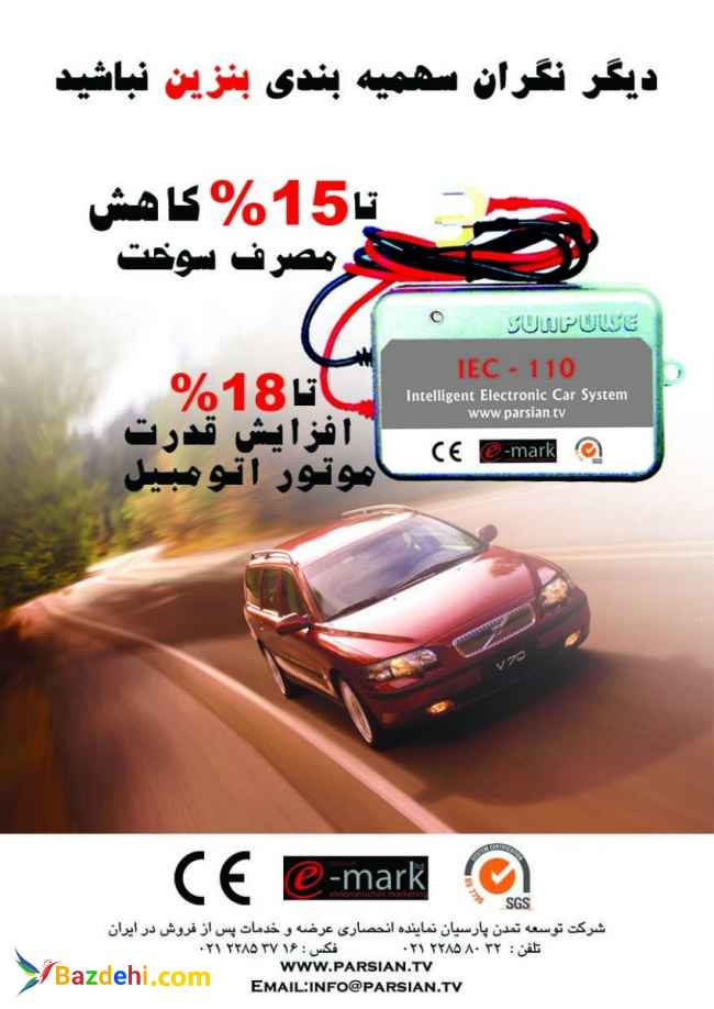 دیگر نگران مصرف بالا وگرانی بنزین نباشید سیستم هوشمند مدیریت برق و بنزین اتومبیل (CES) اتومبیلهای موجود دربازار به دلیل شرایط جوی و موقعیتی از حداکثر قابلیتشان استفاده نمی شود. معمولاً این تصور برای دارندگان خودروبوده که برای بهره برداری بهتر و کارایی بیشتر اتومبیل ، بنزین اضافی به موتور تزریق شود که این امر باعث مصرف بنزین بیشتر و هم ورود بیشتر سوخت در اکومولاتور شده و بر عکس از قابلیت اتومبیل و عمر آن می کاهد.گشتاور موتور نیز کارایی کامل خود را ازدست داده و سرعت نهایی نیز متقابلاً کاهش می یابد که این امر منجر به تعمیر وسرویس موتور اتومبیل نیز خواهد شد . سیستم هوشمند مدیریت برق و بنزین اتومبیل (CES ) دستگاهی الکترونیکی است که می تواند احتراق و شرایط سوخت رسانی در داخل اتومبیل را بهبود دهد قدرت و شتاب لحظه ای را افزایش و آلودگی کمتر ایجاد می نماید وعلاوه بر این می تواند در مصرف سوخت اتومبیل صرفه جویی کند. کارایی مطلوب و نهائی این سیستم بستگی مستقیم به مشخصات کلی و وضعیت هر خودرو و سال تولید آن دارد. مشخصات و کارایی سیستم: 1- تا18% قدرت موتور اتومبیل را افزایش می دهد. 2- تا 15%مصرف سوخت خودرو را متناسب با شرایط هر خودرو کاهش می دهد. 3- سرعت نهایی ایجاد شده در دیفرانسیل خودرو ، متناسب با نوع خودرو متفاوت خواهد بود. ولی تغییرات کاملاً محسوس می باشد. 4- سیستم استارت اتومبیل را تقویت نموده به گونه ای که به سهولت اتومبیل روشن می شود خصوصاً درسرما کارساز می باشد. 5- مدت زمان کارایی باطری(عمرباطری) و اسید باطری خودرو را (2تا3 ) برابر طولانی تر می کند که خود باعث آلودگی کمتر و حفاظت بیشتر ازمحیط زیست می شود. 6- با نصب این سیستم در موتور اتومبیل گازهای خروجی خودرو منطبق با استاندارد محیط زیست اروپا (IV ) خواهد شد. 7- باعث محافظت و کاهش استهلاک قطعات جانبی موتور خودرو می شود ، خود سیستم نیز ماندگاری بسیار بالا دارد. 8- تغییرات ولتاژ برق اتومبیل را بصورت هوشمند کنترل و مدیریت می نماید. 9- قابل استفاده در خودروهای با سوخت بنزین و با کارایی بهتر در موتورهای غیرانژکتوری می باشد . 10- سیستم فوق دارای استانداد اروپا (CE) , (E-mark) وتأیید موسسه استاندارد آمریکا (SGS) و Test Report از مرکز تحقیقات خودرو ژاپن می باشد. مدلهای سیستم: سیستم بهینه ساز مدیریت بنزین و برق اتومبیل در 2 مدل عرضه می گردد: الف- اتومبیلهای با حجم موتور زیر 2000 cc مدل CES –110 ب- اتومبیلهای با حجم موتور بالای 2000 cc مدل CES - 120 نحوه نصب در اتومبیل: سیستم فوق دارای 2 سیم اتصال می باشد . می بایست سیم قرمز را به قطب مثبت و سیم مشکی رابه قطب منفی باتری اتومبیل متصل نموده , خود دستگاه را نیز در محل مناسب در اطراف موتور اتومبیل ثابت نماییم. چراغ نشانگر قرمز روی سیستم , نشان دهنده کارکرد سیستم می باشد. ساخت کشور تایوان. نماینده انحصاری تولید و عرضه در ایران ، شرکت توسعه تمدن پارسیان تلفن:22858032-021 فاکس:22856547-021 همراه:09374004858 Email:این آدرس ایمیل توسط spambots حفاظت می شود. برای دیدن شما نیاز به جاوا اسکریپت دارید site:www.parsiancdc.ir www.parsiancdc.ir/بهینه-ساز-مصرف/