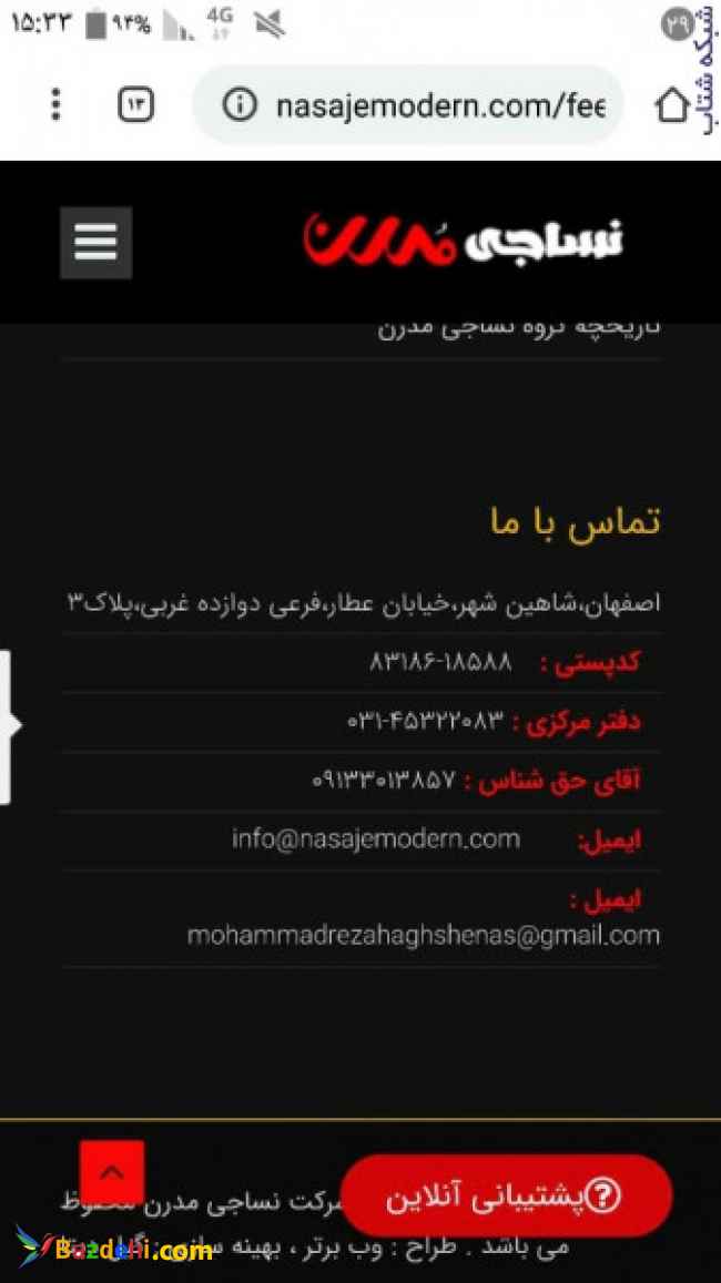 گروه نساجی مدرن بزرگترین مرکز تولید تخصصی انواع آستر پرده و حریر ساده محصولات نساجی مدرن عبارتند از آستری پرده ساده یا فلامنت، آستری پرده تابیده براق یا سوپر ، آستری تابیده مات و حریر ساده این گروه انواع آستر پرده را با عرض سه متر و با کیفیت بالا از بهترین نخ ها تولید می کند. فلامنت های نساجی مدرن دارای وزن 280 گرم و آستری سوپر یا آستری تابیده براق دارای وزن 300 گرم و آستری پرده تابیده مات دارای وزن 300 گرم می باشد. کلیه محصولات دارای جر خور صاف می باشد. کلیه محصولات دارای ضمانت ارجاع در صورت عدم رضایت می باشد. آدرس دفتر مرکزی : اصفهان ، شاهین شهر خیابان عطار ، فرعی 12 غربی ، پلاک 3 شماره های تماس: 03145322083 09133013857 ایمیل: این آدرس ایمیل توسط spambots حفاظت می شود. برای دیدن شما نیاز به جاوا اسکریپت دارید آدرس سایت: http://nasajemodern.com http ://nasajemodern.ir اینستاگرام: https://instagram.com/nasaje_modern?igshid=12mih9p4t16bo ************ آستری پرده پرده آستری فلامنت آستری ساده آستری فلامنت فیلامنت تابیده براق تابیده مات آستری تابیده براق آستری تابیده مات براق مات پرده براق پرده مات پرده زیبا پرده لوکس پرده جدید پرده اتاق خواب جرخور جرزخور حریر نساجی نساجی مدرن صنعت نساجی مدرن حریر ساده حریر شیری حریر سفید تولید انواع پرده تولید حریر فروشنده حریر تولید آستر تابیده مات تولید آستر تابیده براق تولید آستر فلامنت تولید حریر ساده مرکز فروش آستر تولید پرده مدرن تولید پرده گروه نساجی مدرن گروه نساجی پارچه پشت پرده ای آستر پرده خرید پارچه تابیده براق خرید پارچه تابیده مات خرید پارچه پشت پرده پرده فلامنت پرده فیلامنت آستری چیست پرده های فانتزی خانه پرده های مدل جدید پرده های ساده و شیک پرده های مدرن آشپزخانه پارچه براق پارچه سرا پرده سرا فروش اینترنتی پارچه پرده ای قیمت پارچه های پرده ای بزرگ ترین مرکز فروش آستری خرید اینترنتی پارچه حریر خرید اینترنتی آستری پرده خرید اینترنتی فلامنت خرید اینترنتی تابیده مات خرید اینترنتی تابیده براق زبرا پرده زبرا