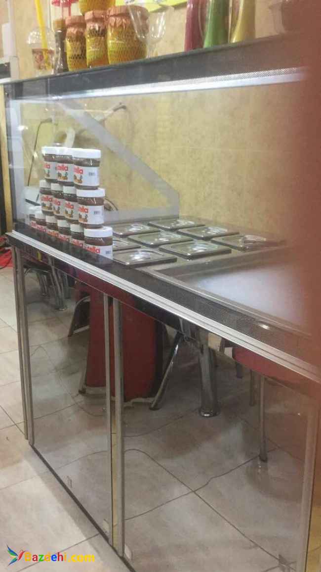 دستگاه بستنی ساز رولی تک پن به همراه یخچال و 9 عدد تاپینگ میوه ابعاد دستگاه : طول 150 سانتی متر عرض 85 سانتی متر ارتفاع 95 سانتی متر ابعاد سینی : 60×55 دارای پدال الکتریکی برای شوک دادن به صفحه سرد در هنگام رول کردن دارای یخچال 200 لیتری با دمای کار بالای صفر جهت نگهداری مایع بستنی دمای صفحه سرد 30- درجه سانتیگراد سیستم برودت با استفاده از 3 عدد کمپرسور مارک سکاپ پیستونی با بازدهی بالا و مصرف انرژی پایین ساخت کشور اسلواکی صفحه سرد با استفاده از استیل سی یو اس 304 مخصوص صنایع غذایی با ضخامت بالا و مقاوم در برابر ضربه وخش دارای شیشه دور دستگاه با روشنایی ال ای دی نواری جهت روشنایی صفحه ها دارای 4 عدد چراغ ترمز دار در زیر شاسی دستگاه بدنه دستگاه با استفاده از استیل خشدار