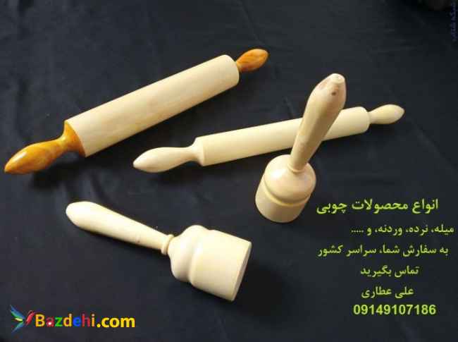 فروش وسایل چوبی آشپزخانه و تزئینی خانگی پایه مبل و میز چوبی وردنه گوشت کوب چوبی