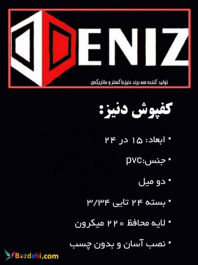 جنس کالا : PVC نوع طرح : الواری رنگ بندی : 10 رنگ کشور سازنده : ایران ضخامت : 2 میل نوع بسته بندی : تایل مقاومت سایشی : AC4 عرض تایل : 150 میلی متر طول تایل : 240 میلی متر متراژ کارتن : 34/3 متر مربع تعداد در بسته : 24 شیت کاربری : اماکن مسکونی ، اداری ، تجاری و ... نقد و بررسی کفپوش دنیز : • کفپوش پی وی سی DENIZ با لایه محافظی 220 میکرون تولید می گردد . • کفپوش دنیز به آسانی و سهولت قابل نصب و اجرا است . • PCV DENIZ عایق رطوبت ، صدا ، دما و الکتریسته است . • کفپوش پی وی سی دنیز به وسیله دستگاه لیزر به صورت منظم برش می خورد . ساعات کاری : همه روزه 7:30 الی 12 شب یکسره جمعه ها 8 الی 9 شب یکسره مدیر فروش مهندس سلیمانی 09120321004 واحد بازاریابی : 09010000871 09130911392 09133375880 09138991552 09214414782 وب سایت خرید آنلاین : www.flooring-center.ir اینستا گرام : Flooring-center.ir