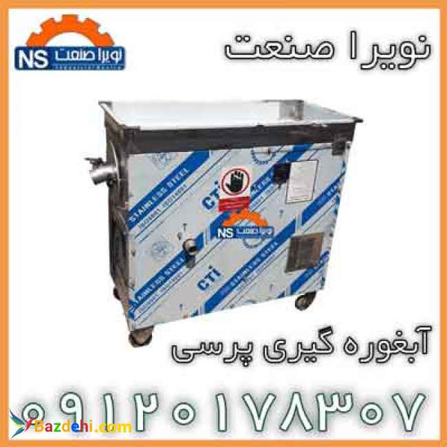 جدید ترین مدل های دستگاه آبغوره گیری مدل پرسی می باشد . این مدل دستگاه ها تماما از جنس استیل هستند و کارایی بسیار بالایی دارند و نیازی به پرس کردن تفاله بعد از آب گیری ندارند سیستم کار کرد این نوع دستگاه ها گیربکس تسمه می باشد که از مزایای هر دو سیستم گیربکسی و تسمه ای برخوردار می باشند ؛ ظرفیت این دستگاه ها از 400 کیلو تا 1000 کیلو می باشد که هر کدام مناسب برای مغازه ها و کارخانه می باشد . مشخصات فنی : بدنه استیل به ضخامت یک میلیمتر ، موتور سه اسب بخار ، انتقال نیرو گیربکس تسمه ، جنس مارپیچ داخلی از استیل استن 316 می باشد. برای کسب اطلاعات بیشتر با کارشناسان ما تماس حاصل نمایید . 09120178307