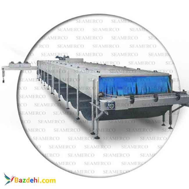 این دستگاه برای پاستور کردن محصول نهائی در داخل شیشه و یا قوطی فلزی و یا حلب یه کار میرود. و دارای مشخصات فنی زیر می باشد: جنس استیل تمام اتوماتیک با کنترل plc ابعاد دستگاه : بسته به ظرفیت خط تولید محاسبه و طراحی و تولید می شود ابعاد تقریبی متعارف : 12 الی 24 متر طول * 120 الی 380 س متر عرض دهانه * 110 الی 150 س متر ارتفاع نوع عملکرد : غرقآبی ، دوشی (دو یا سه مرحله ای ) دارای دو مبدل حرارتی دارای سیستم برگشت بخار آب جنس نوار نقاله : استیل ، ناودانی آهنی ، pvc