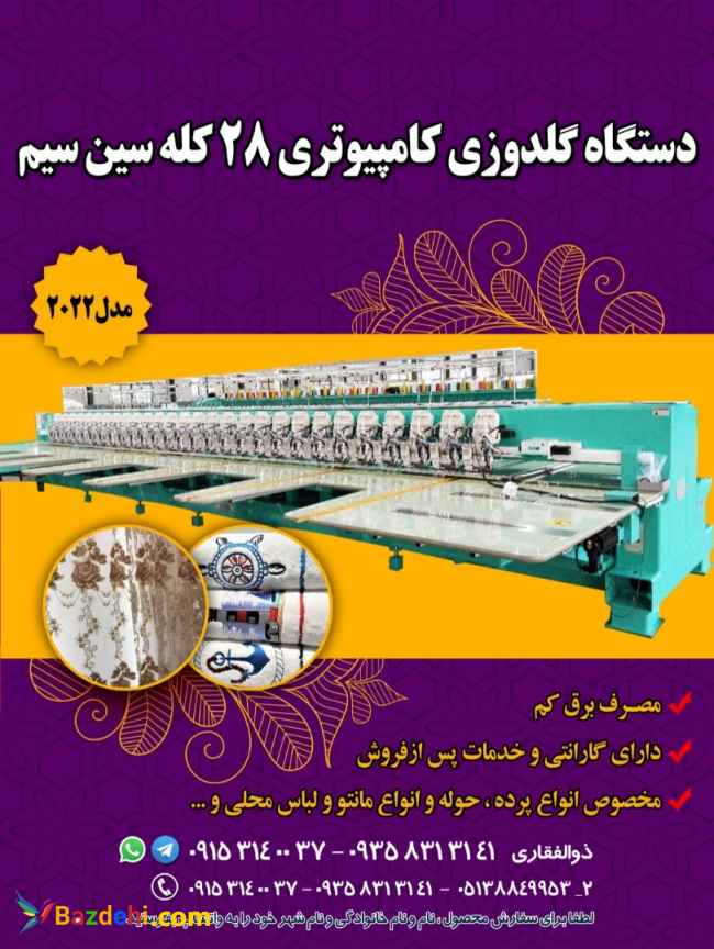 دستگاه گلدوزی کامپیوتری 28کله سین سیم