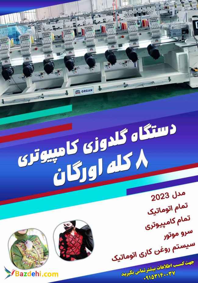 دستگاه گلدوزی کامپیوتری 8 کله اورگان تمام اتوماتیک