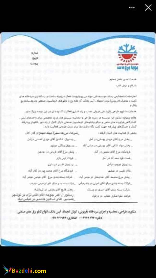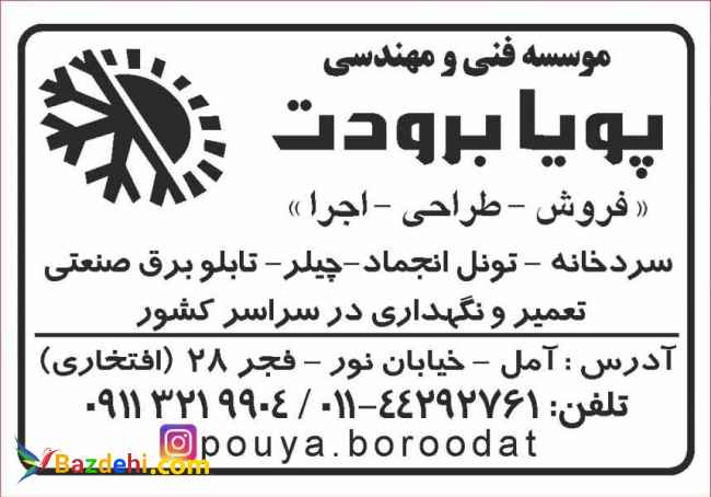 مازندران آمل خیابان شیخ فضل الله نوری نبش فجر 28 موسسه فنی مهندسی پویا برودت