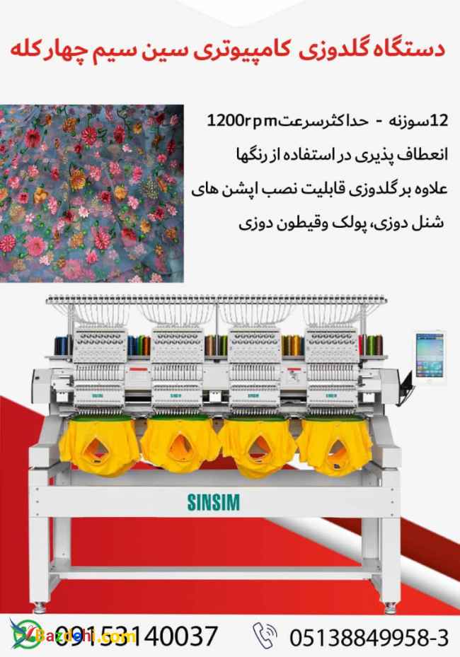 فروش جدیدترین دستگاه گلدوزی کامپیوتری سین سیم چهار کله