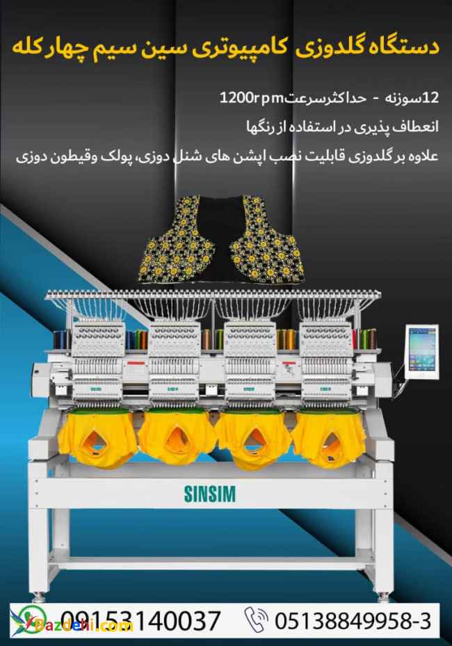 فروش جدیدترین دستگاه گلدوزی کامپیوتری سین سیم چهار کله
