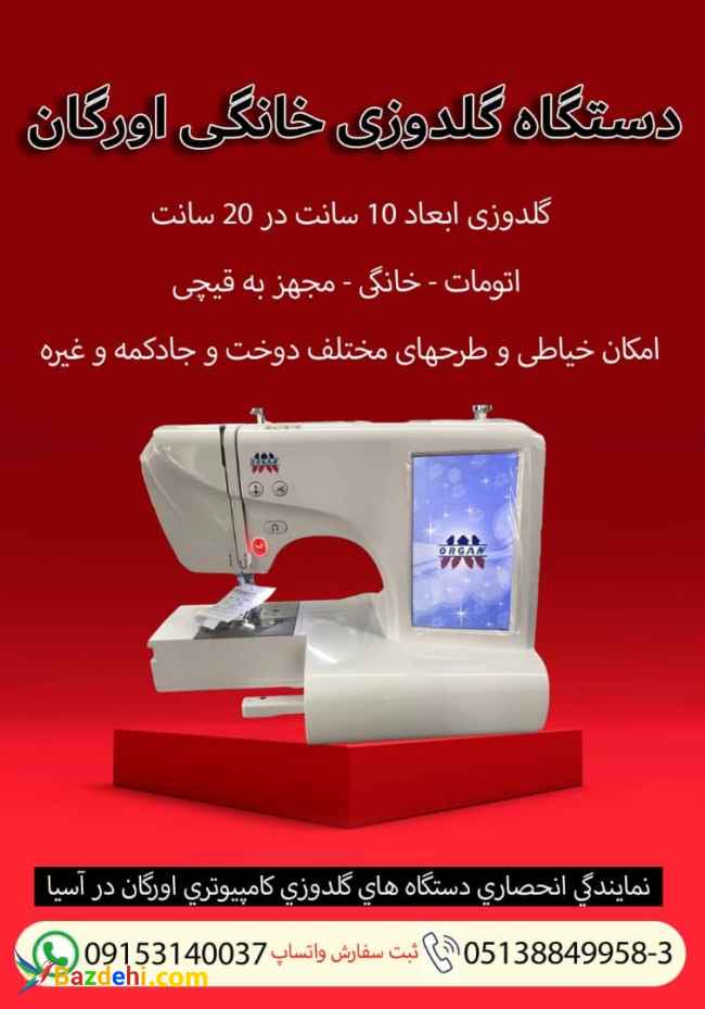گلدوزی ابعاد 10 سانت در 20 سانت - اتومات - خانگی - مجهز به قیچی - امکان خیاطی و طرحهای مختلف دوخت ، جادکمه و غیره ............................................................................ به کانال تلگرام مابپیوندید : http://t.me/goldoziorgan به کانال اینستا مابپیوندید: https://instagram.com/_u/goldozi.com.embroidery سایت گلدوزان ایران: www. goldozi.com تلفن تماس جهت هماهنگی: 09153140037 05138849952 05138849953 با مدیریت: مجید ذوالفقاری
