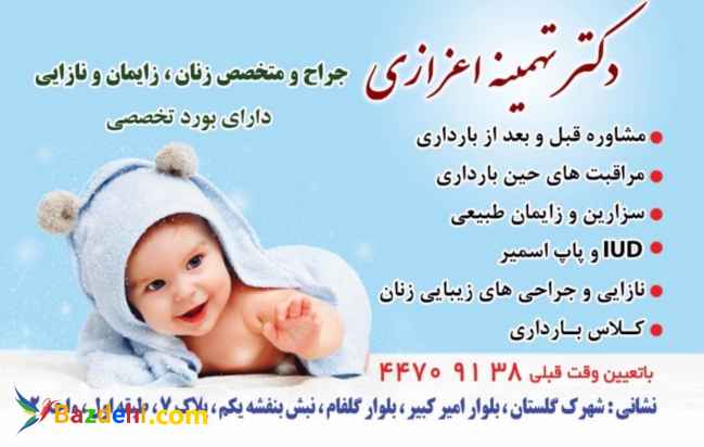 دکتر تهمینه اعزازی متخصص زنان و زایمان و نازایی کلیه جراحی های ترمیمی و زیبایی و درمانی زنان مشاوره و درمان نازایی مشاوره قبل، حین و بعد بارداری مراقبت حین بارداری و زایمان طبیعی و سزارین تعبیه IUD، پاپ اسمیر و درمان انواع عفونت ها و بیماری های زنان