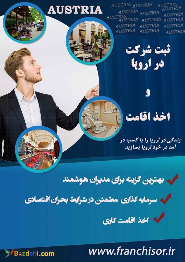 برای ثبت شرکت در اتریش و آلمان و سایر کشورهای اروپایی نیاز به طی مراحل قانونی از ثبت در دفتر اسناد رسمی، افتتاح حساب، واریز سرمایه ثبتی، ثبت نهایی در دادگاه و اخذ کد مالیاتی و اجازه کار است. معرفی محلی به عنوان دفتر کار شرکت و حسابدار از الزامات دیگر ثبت شرکت در اروپاست .اگر برای اهداف تجاری مایل به ثبت شرکت در اروپا هستید فرانچایزر خدمات جامعی از ابتدا تا انتهای کار به شما ارایه خواهد داد و در هیچ یک از مراحل با سد قوانین یا عدم همکاری سیستم بانکی به لحاظ تحریم های یکجانبه روبرو نخواهید شد. ما برای هر مشکلی در این روند راه حل مناسبی خواهیم داشت. پیش از ثبت شرکت اطلاعات جامعی در خصوص قوانین و ضوابط مالیاتی و بانکی در اختیار شما قرار خواهیم داد و در تمامی مراحل از تهیه دفتر کار و انتخاب حسابدار تا افتتاح حساب بانکی و نقل و انتقالات مالی و مشاوره مالیاتی و عقد قراردادهای کاری و استخدامی در کنار شما خواهیم بود.تمرکز فعالیت فرانچایزر در کشورهای آلمان و اتریش است و در سایر کشورها بسته به قوانین و رویه حقوقی و بانکی آماده ارایه خدمات به شماست. شماره تماس: 02186087156