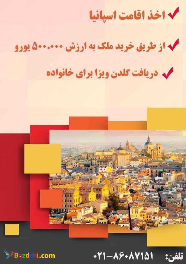 "آیا از مزایای اخذ گلدن ویزای اسپانیا با خبر هستید؟ داشتن حق سکونت در کشور اسپانیا. امکان سفر نا محدود به کشورهای حوزه شنگن. امکان دریافت ویزای مولتی و اقامت برای تمامی افراد خانواده. عدم نیاز به اشتغال و یا راه اندازی کسب و کار در اسپانیا. امکان دریافت اقامت موقت و سپس اقامت دائم اروپا. معاف بودن از پرداخت مالیات سالانه. امکان افتتاح حساب در بانکهای اروپایی. امکان تحصیل رایگان فرزندان در کشور اسپانیا، بلافاصله پس از اقامت در اسپانیا. سهولت در اخذ ویزای دیگر کشورها. امکان اخذ اقامت دائم کشوراسپانیا پس از 5 سال . امکان اخذ تابعیت کشور اسپانیا پس از مدت 10 سال اقامت قانونی بدون وقفه در این کشور. همه این مزایای تنها با خرید یک ملک به ارزش 500 هزار یورو در کشور اسپانیا امکانپذیر است. برای کسب مشاوره تخصصی سرمایه گذاری ملکی و مهاجرت به اسپانیا با کارشناسان ما در تماس باشید. شماره تماس دفتر تهران : 02186087151 www.eusecondhome.com"
