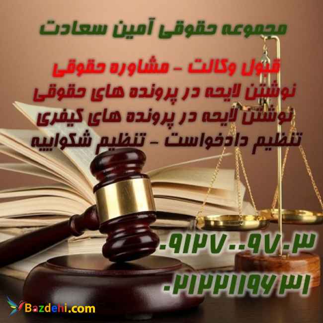 انجام خدمات حقوقی , کیفری , خانواده , جزائی در زمینه های مختلف با مجموعه حقوقی امین سعادت
