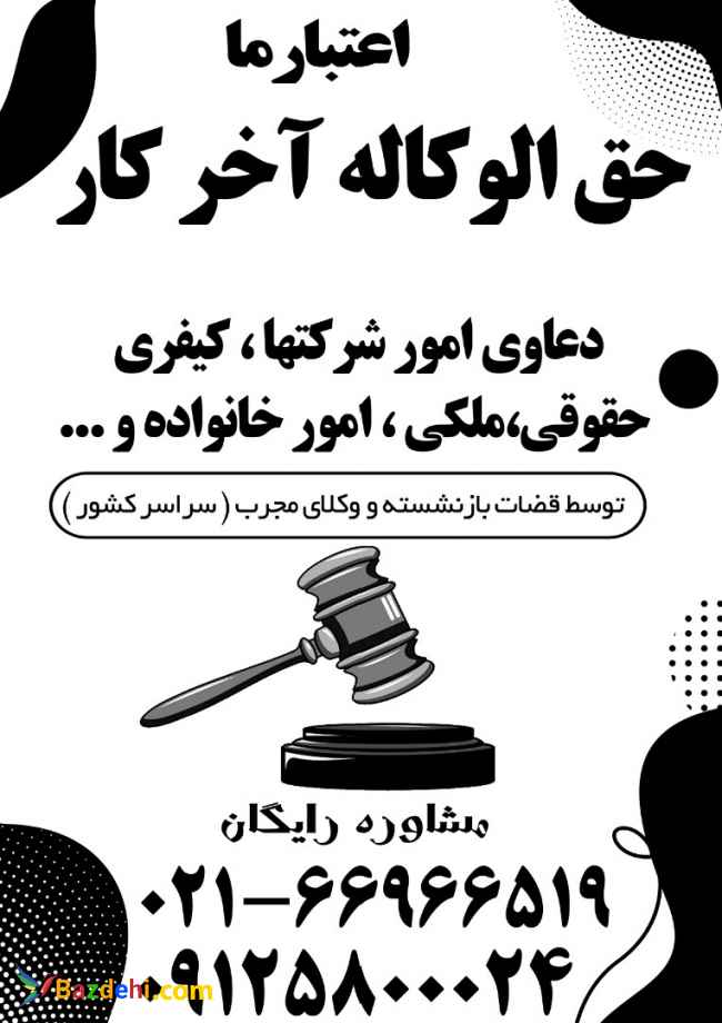 مشاوره حقوقي رايگان و انجام كليه امور حقوقي و قضايي در سراسر كشور با شرط حق الوكاله آخركار