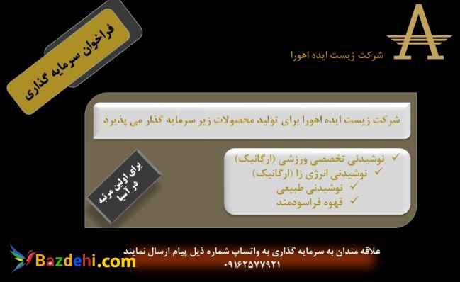 جذب سرمایه برای تولید محصولات جزئیات لازم در تصویر ذکر شده است لطفا به شماره درج شده در تصویر پیام ارسال بفرمائید.