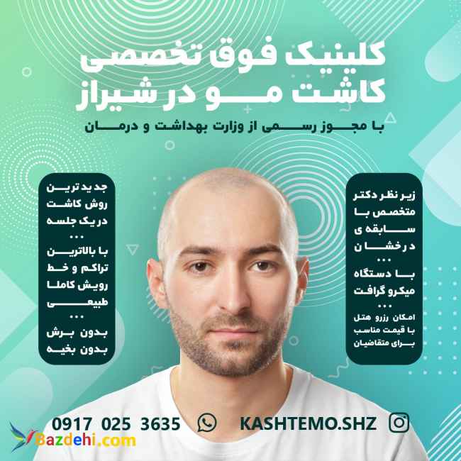 ✅ کلینیک فوق تخصصی کاشت مو در * شیراز * ✅ با مجوز رسمی از وزارت بهداشت و درمان ✅ جدیدترین روش های کاشت مو در یک جلسه ✅ با بالاترین تراکم و خط رویش کاملا طبیعی ✅ بدون برش و بخیه ✅ زیر نظر دکتر متخصص با سابقه ی درخشان ✅ با دستگاه میروگرافت ✅ با محل اقامت برای متقضایان شماره تماس: 09170253635 آدرس:یراز. خیابان قصردشت Instagram.com/Kashtemo.shz