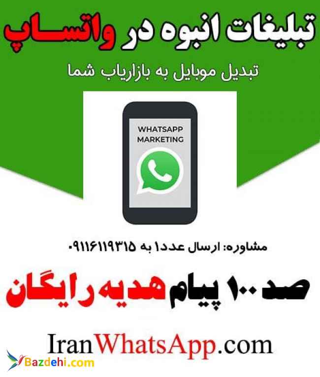 *ارسال تبلیغات انبوه در واتساپ* ۶ کاربرد ارسال پیام واتساپ برندسازی / بازاریابی / تبلیغات / افزایش فروش / اطلاع رسانی / آموزش ? یه تبلیغ *مدرن و لوکس* ?کلاس *کارت ویزیت* رو داره ?محتوای *کاتالوگ* رو داره ?مثل *SMS* رو گوشی مشتری میره ?مثل *تلگرام* قابلیت؛ چت دو طرفه داره ?مثل *اینستاگرام* میشه عکس و فیلم دید ?مثل *بیلبورد* تبلیغاتی میتونه برندسازی کنه ?مثل *تلوزیون* میتونه انبوه تبلیغ کنه ?مثل *بازاریاب حضوری* میتونه دیالوگ برقرار کنه ?مثل *سایت* میشه مقاله فرستاد همه چی رو یک جا داره ... مزایا: ? اولین تبلیغات نفر به نفر(دایرکت) در شبکه اجتماعی ?بازاریابی مدرن ?ارتباط دوطرفه با مشتری ?امکان پاسخدهی و افزایش بازخورد ?جایگزین مناسب برای کاتالوگ/کارت ویزیت/بروشور و ... ?اثرگذاری بالا ??? ✅ با قابلیت پیام اختصاصی نفر به نفر به شمارهای 1- مخاطبین دفترچه تلفن 2- بانک شماره هدف(شماره هر شهر، گروه تلگرامی و ...) 3- پیش شماره دلخواه هر شهر شما هدف رو بگو، شلیک با ما... ?مشاوره=رایگان ایران واتساپ، مرجع ارسال تبلیغات انبوه واتساپی در کشور IranwhatsApp.com 09116119315 09116119316 09116662207