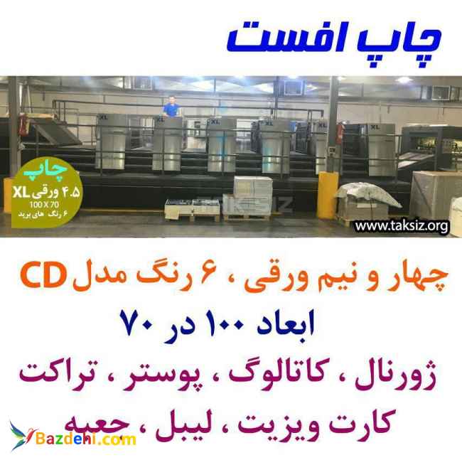 استفاده از جلوه های بصری یکی از عوامل موفقیت تبلیغات است."چگونه گفتن پیام" به اندازه ی خود پیام مهم بوده و این جادوی تبلیغات است. مرکزچاپ وبسته بندی تخصصی "تکسیز" با مدرن ترین ماشین الات چاپ و بسته بندی (چهارو نیم ورقی،لیتوگرافی،افست،سلفون کشی،یووی موضعی،بابس،ویندوپچ،صحافی،جعبه چسبانی) وارتباط مستقیم با چاپخانه ومناسبترین تعرفه قیمت برای همکاران عزیز و کادری مجرب در کنار شماست که در این مسیر بهترین باشید.خدمات مجموعه تکسیز شامل چاپ و طراحی انواع تراکت گلاسه ، تحریر و کاربن لس ،کارت ویزیت،پوستر،بروشور، سربرگ،کاتالوگ،ست اداری،قبض و بلیط،حواله های انبار میباشد.برای اطلاع از قیمت میتوانید با مشاورین زبده ما تماس حاصل فرمایید.